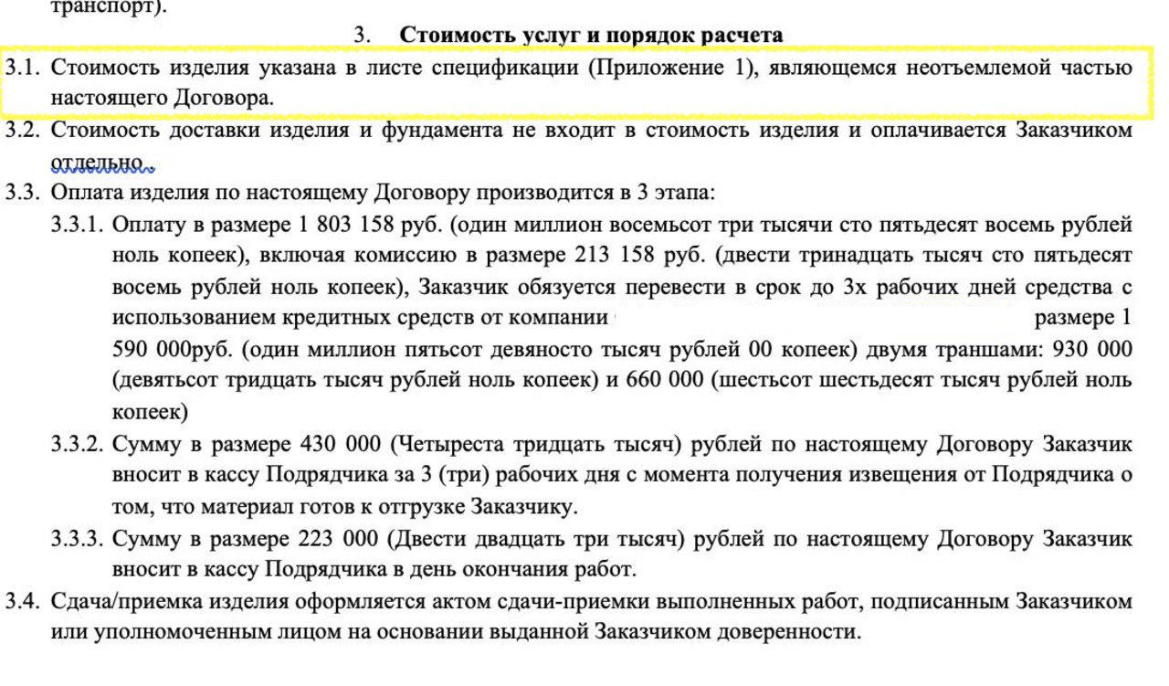 Цена фиксируется в договоре